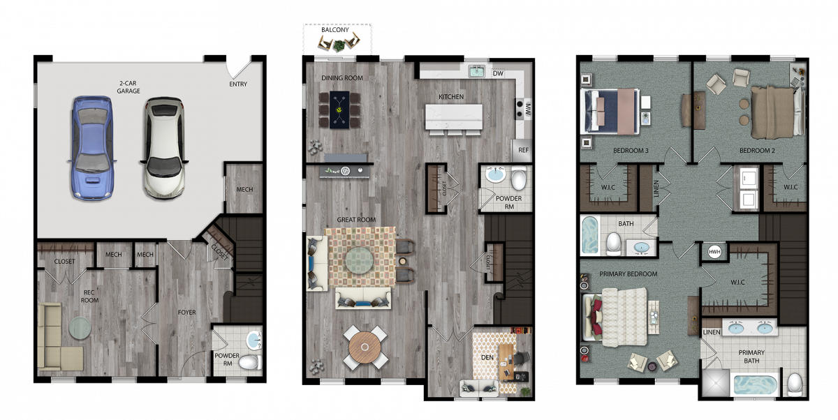 1, 2, 3 bedroom apartments from $2,585