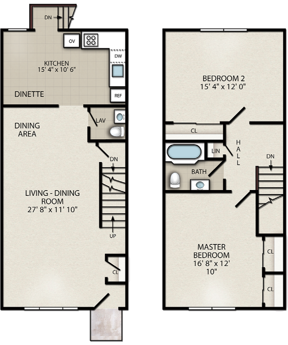 | 2 Bedroom Duplex This link will open in an overlay. | 2 Bed | 1.5 Bath | 1130 sq ft | from $2,290 | - | Select Unit & Apply | |