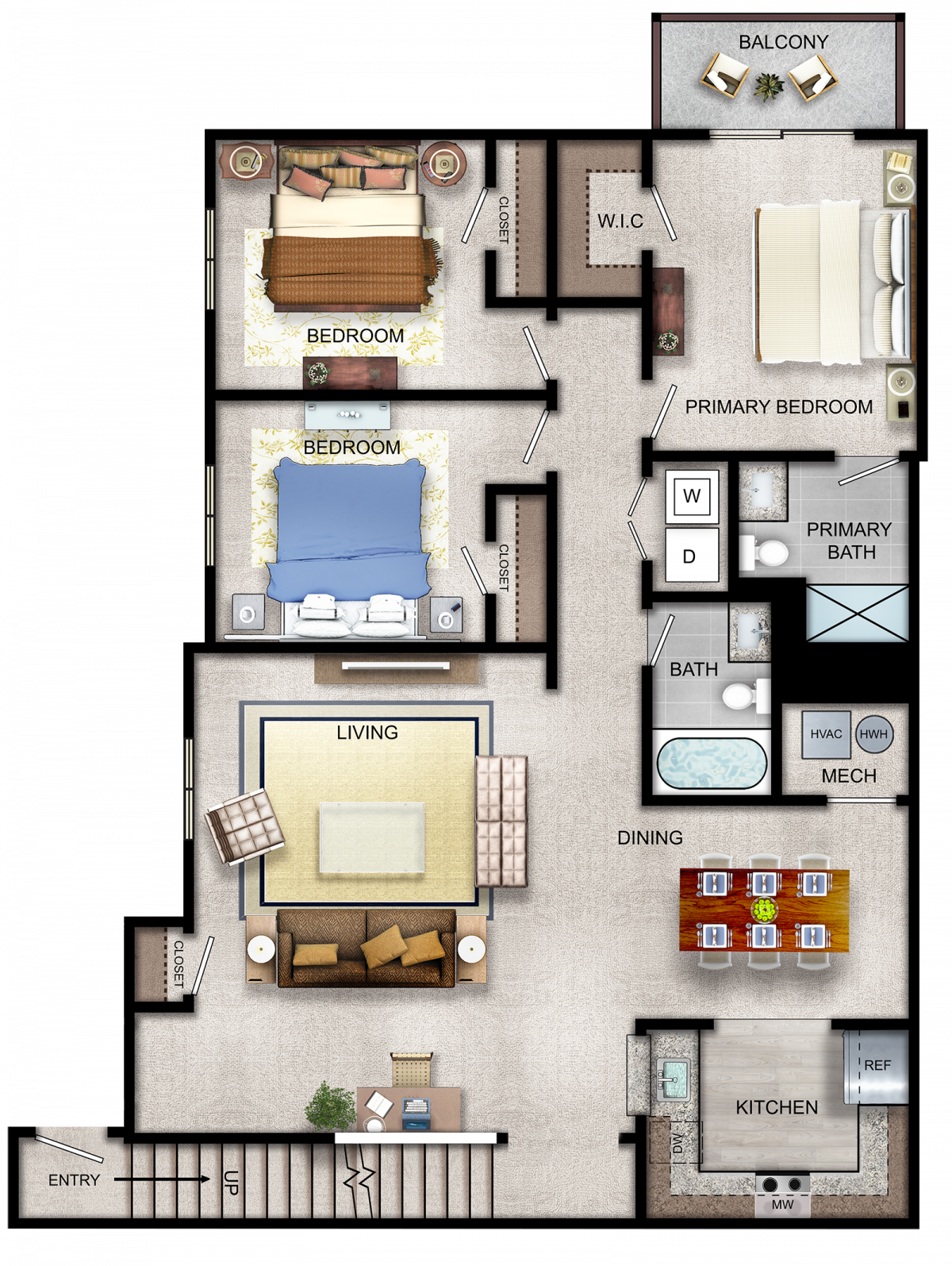 1, 2, 3 bedroom apartments from $2,795