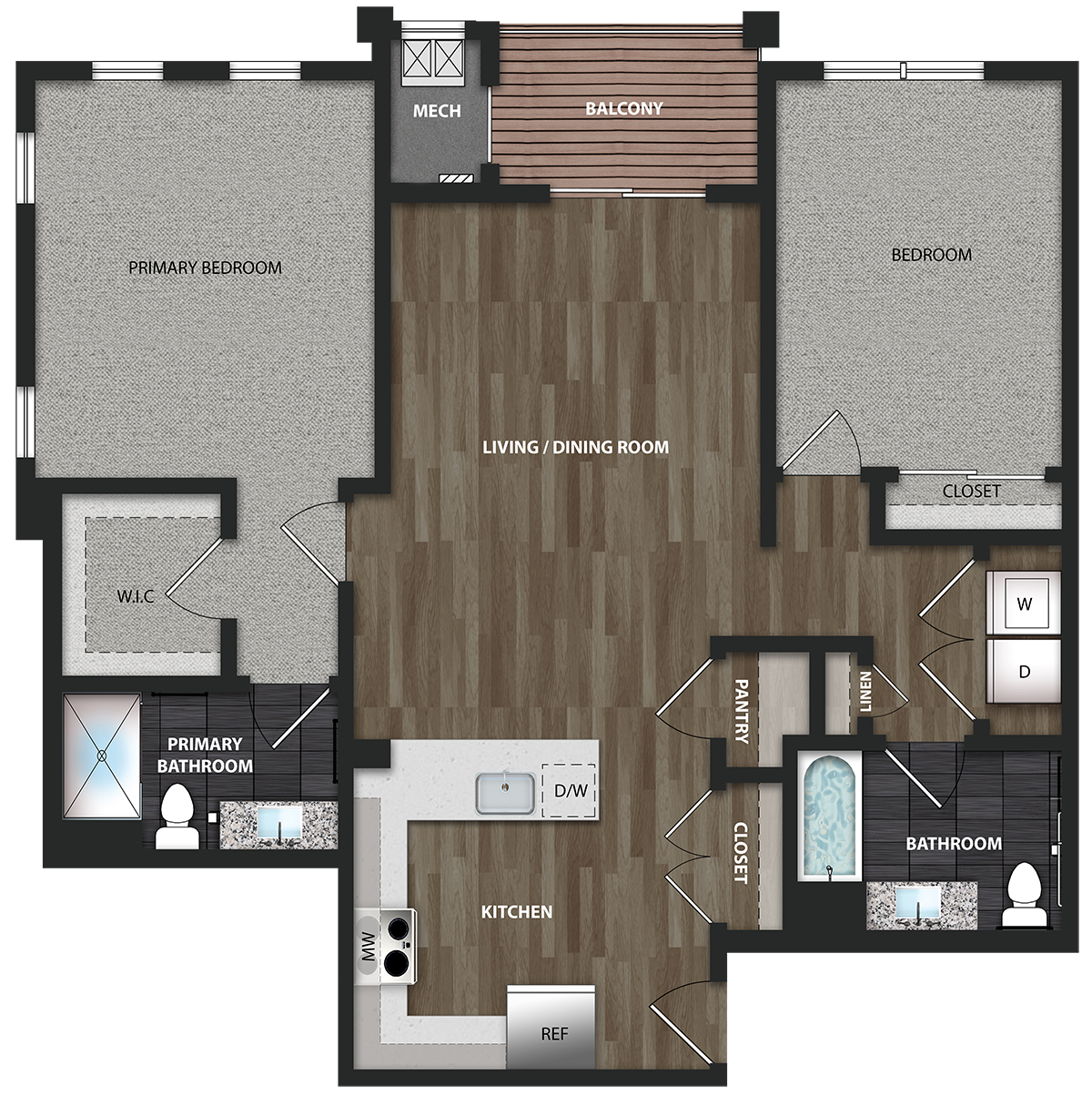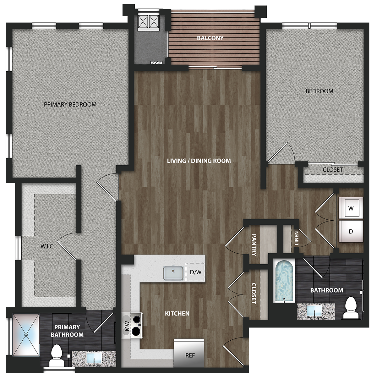 | The Orchid This link will open in an overlay. | 2 Bed | 2 Bath | 1255 sq ft | from $2,915 | - | Select Unit & Apply | |