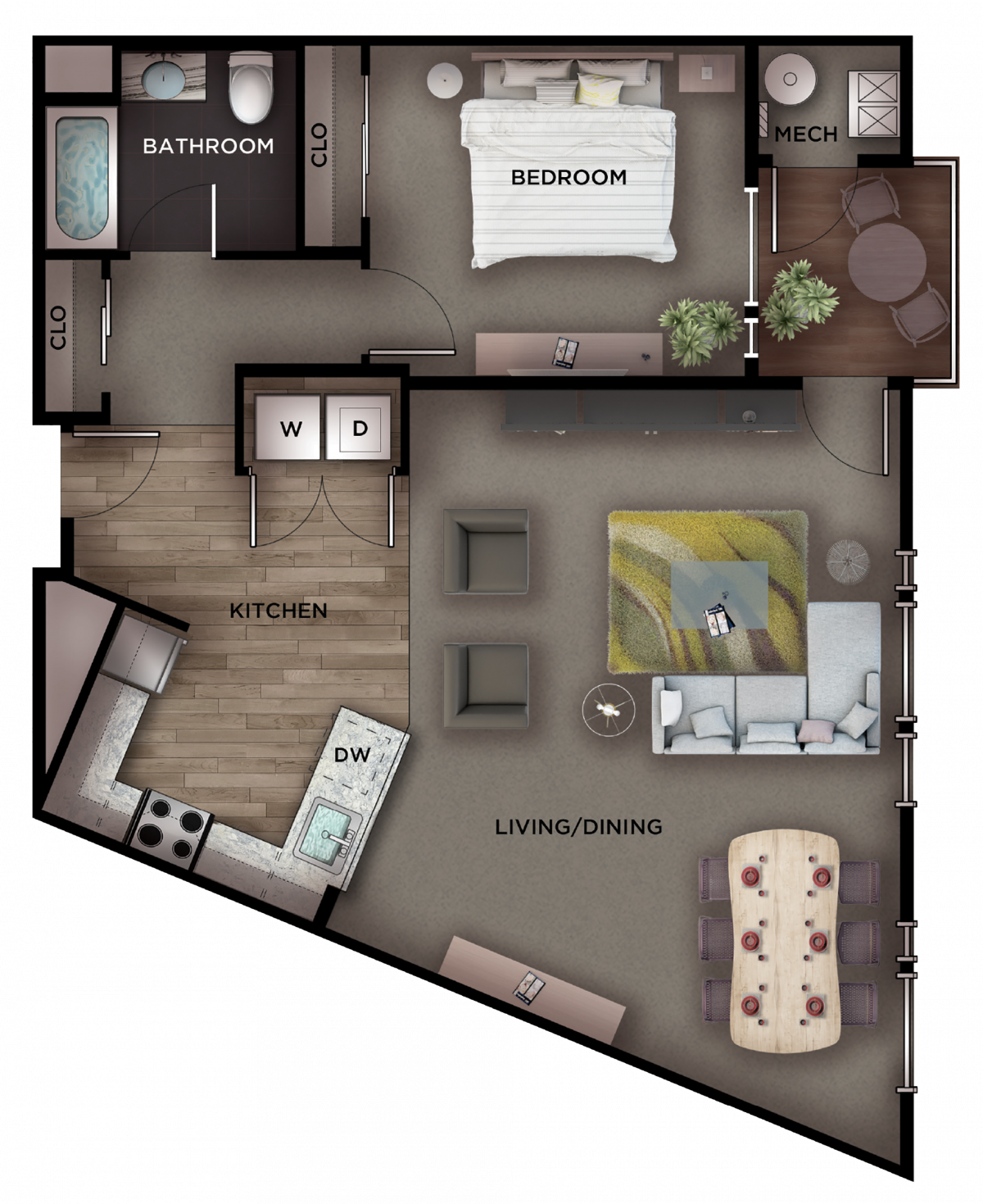 choice of spacious one and two bedroom high-end, luxury apartment homes, most
