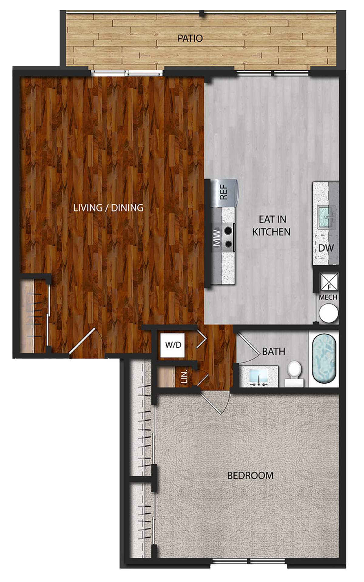- Hardwood floors or wall-to-wall carpet