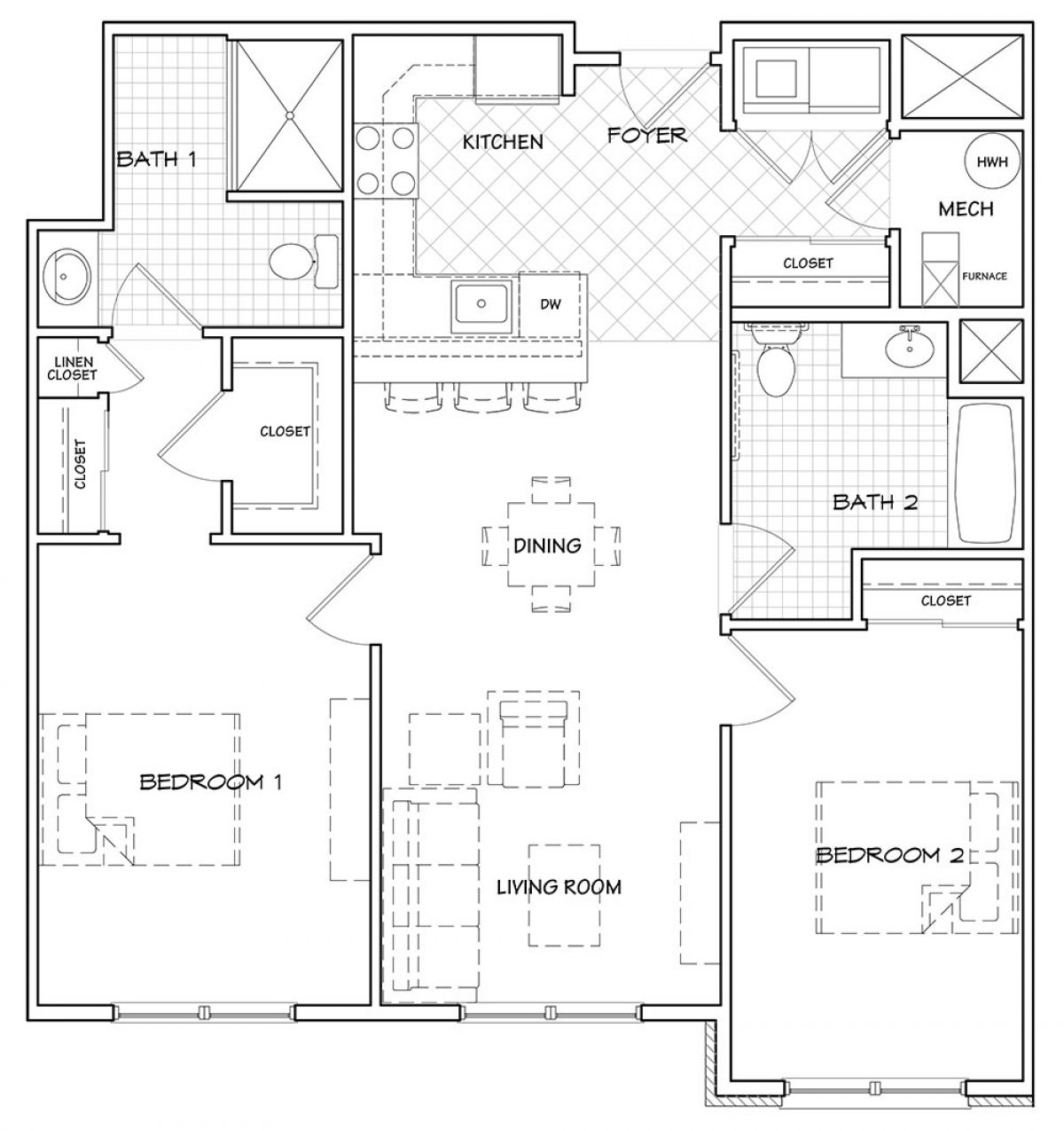 | 2 Bedroom This link will open in an overlay. | 2 Bed | 2 Bath | 1105 sq ft | Call for Pricing | - | Available Soon | Find similar apartments |