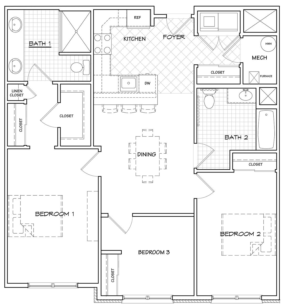 | 3 Bedroom B This link will open in an overlay. | 3 Bed | 2 Bath | 1165 sq ft | Call for Pricing | - | Available Soon | Find similar apartments |