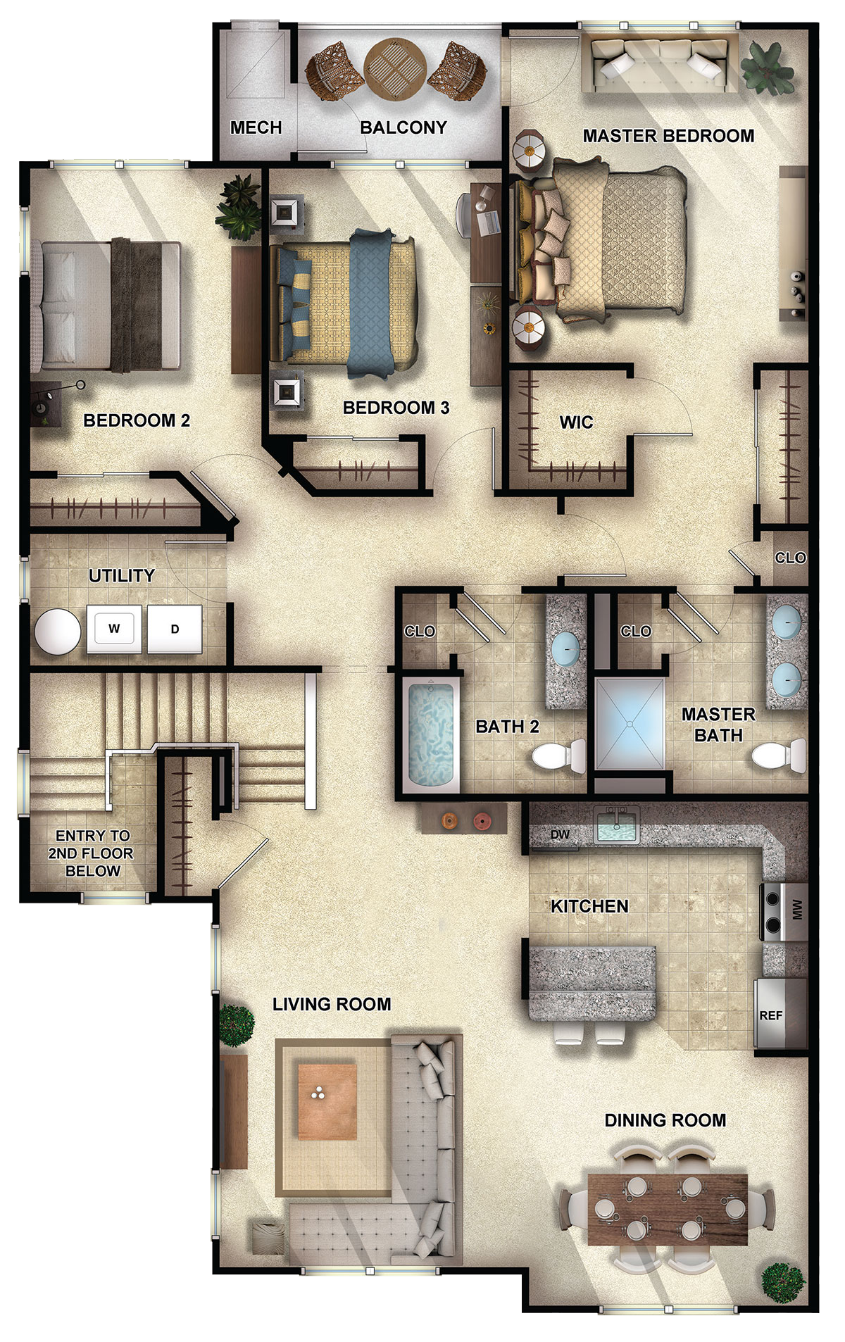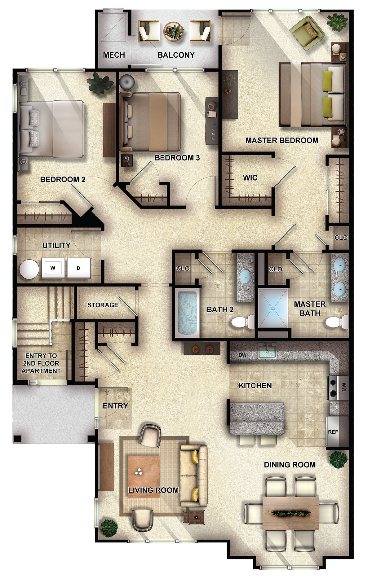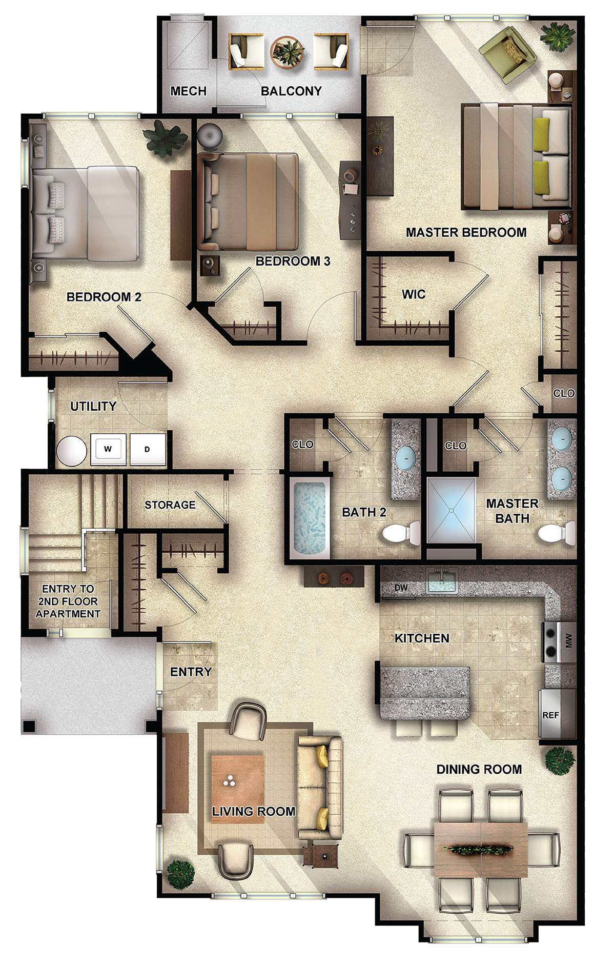2, 3 bedroom apartments from $2,900