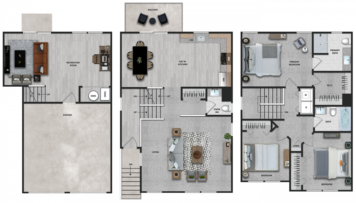 | 3 Bedroom This link will open in an overlay. | 3 Bed | 2.5 Bath | 1610 sq ft | from $3,095 | 1 Month Free Rent | Select Unit & Apply | |