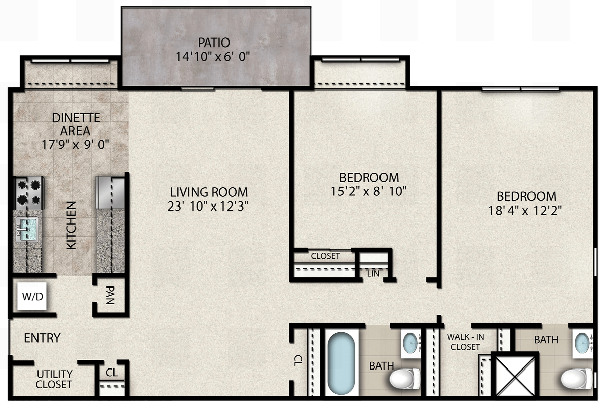 | 2 Bedroom Second Floor This link will open in an overlay. | 2 Bed | 2 Bath | 1010 sq ft | from $2,615 | - | Select Unit & Apply | |